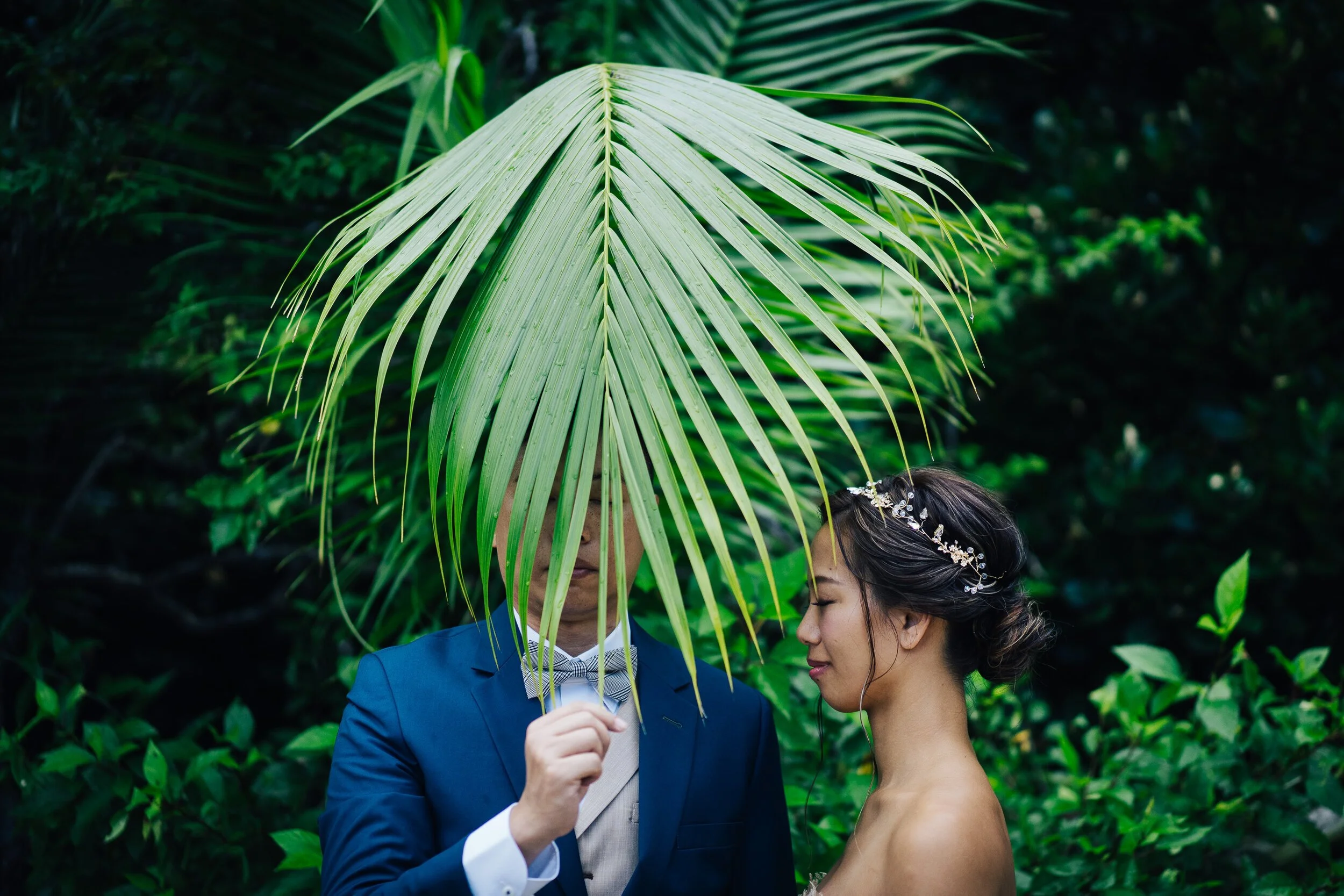 グリーンだけで束ねる沖縄版「一色」の花束。緑のグラデーションに目を奪われる、沖縄ならでは花束です。