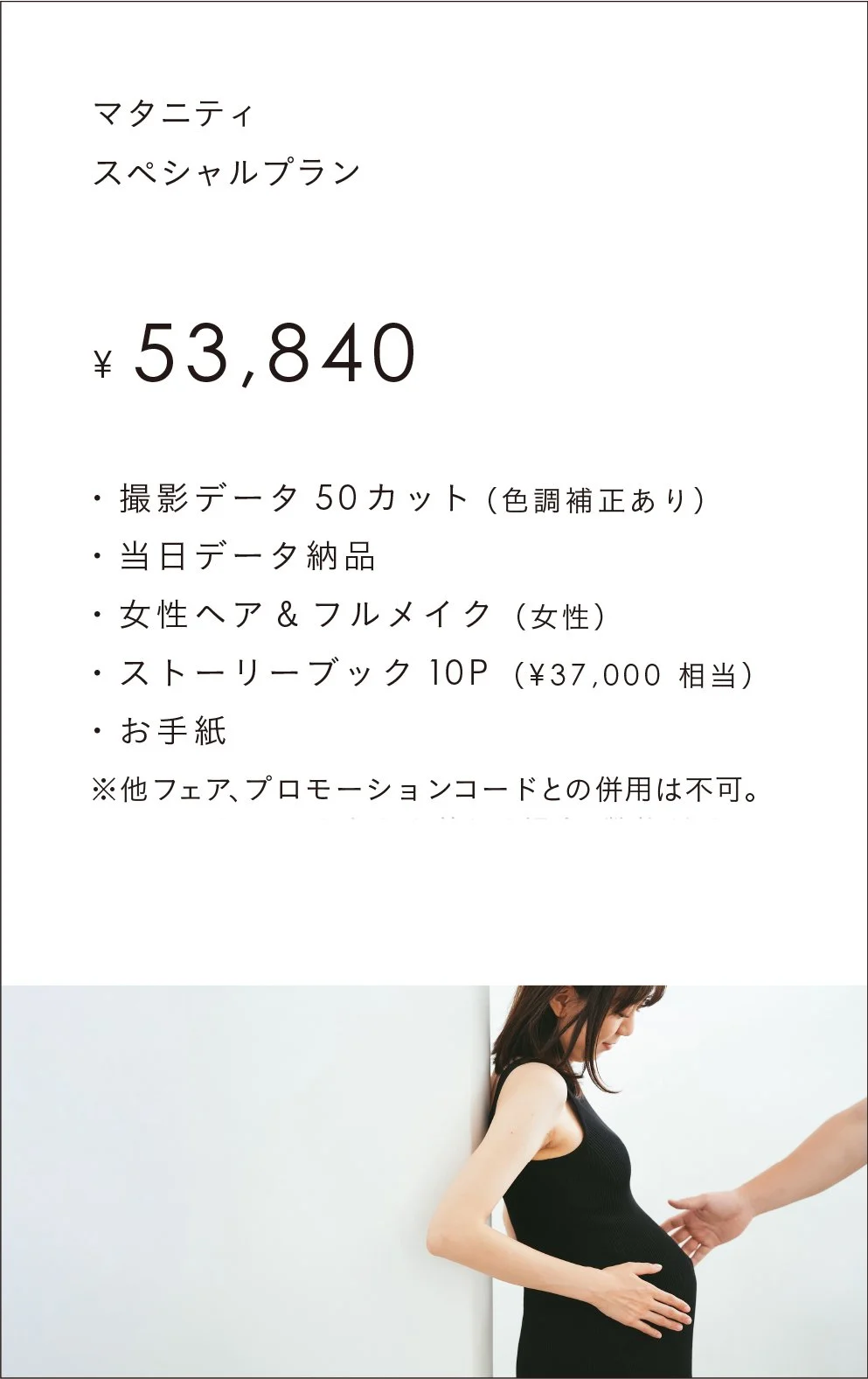 ・予約時に撮影メニュー「マタニティ」を選んで頂き、「フェア・スペシャルプラン」をご選択された方