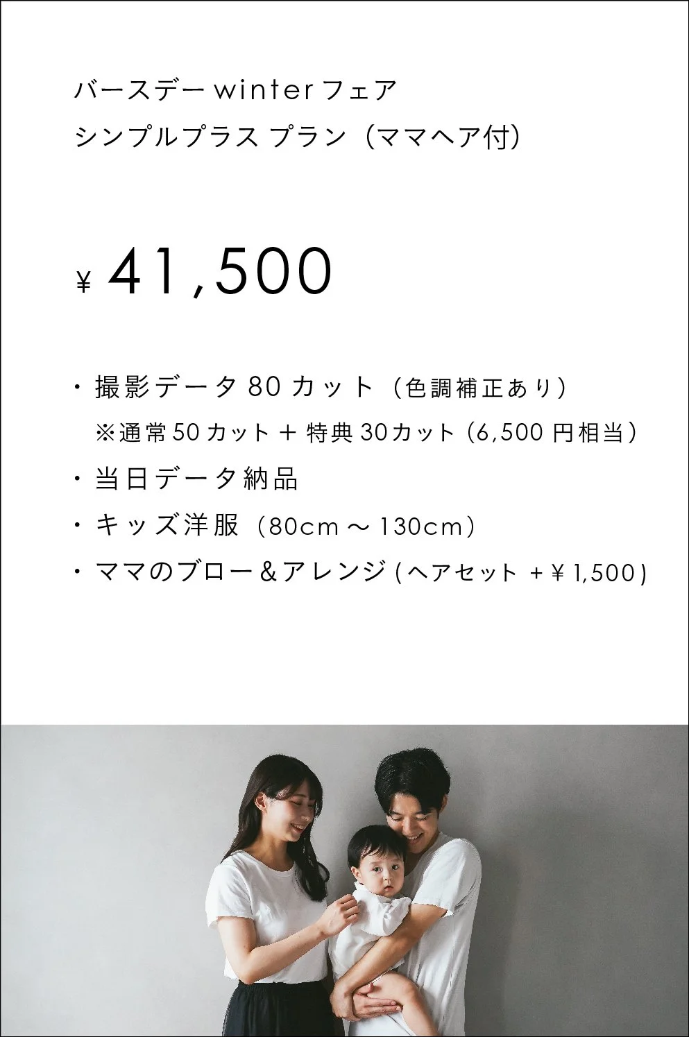 ハーフバースデーのお子さまも、フェア対象です。プロモーションコード「2601bd」をご入力の上、ご予約ください。