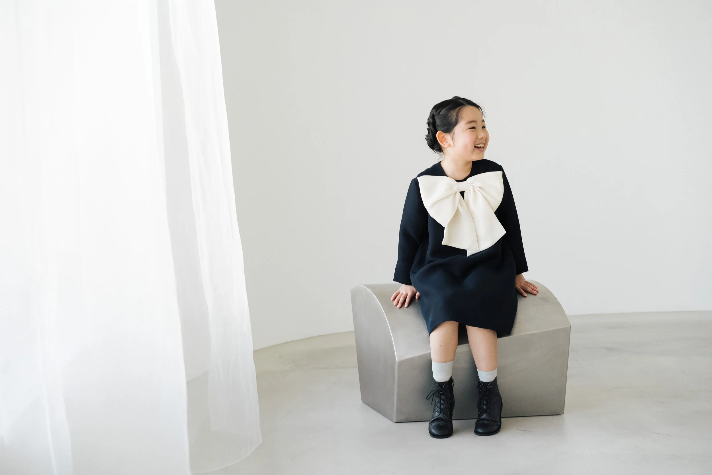 お子さまを引き立てるシンプルでタイムレスなデザインの衣装がお祝いの撮影を彩ります。