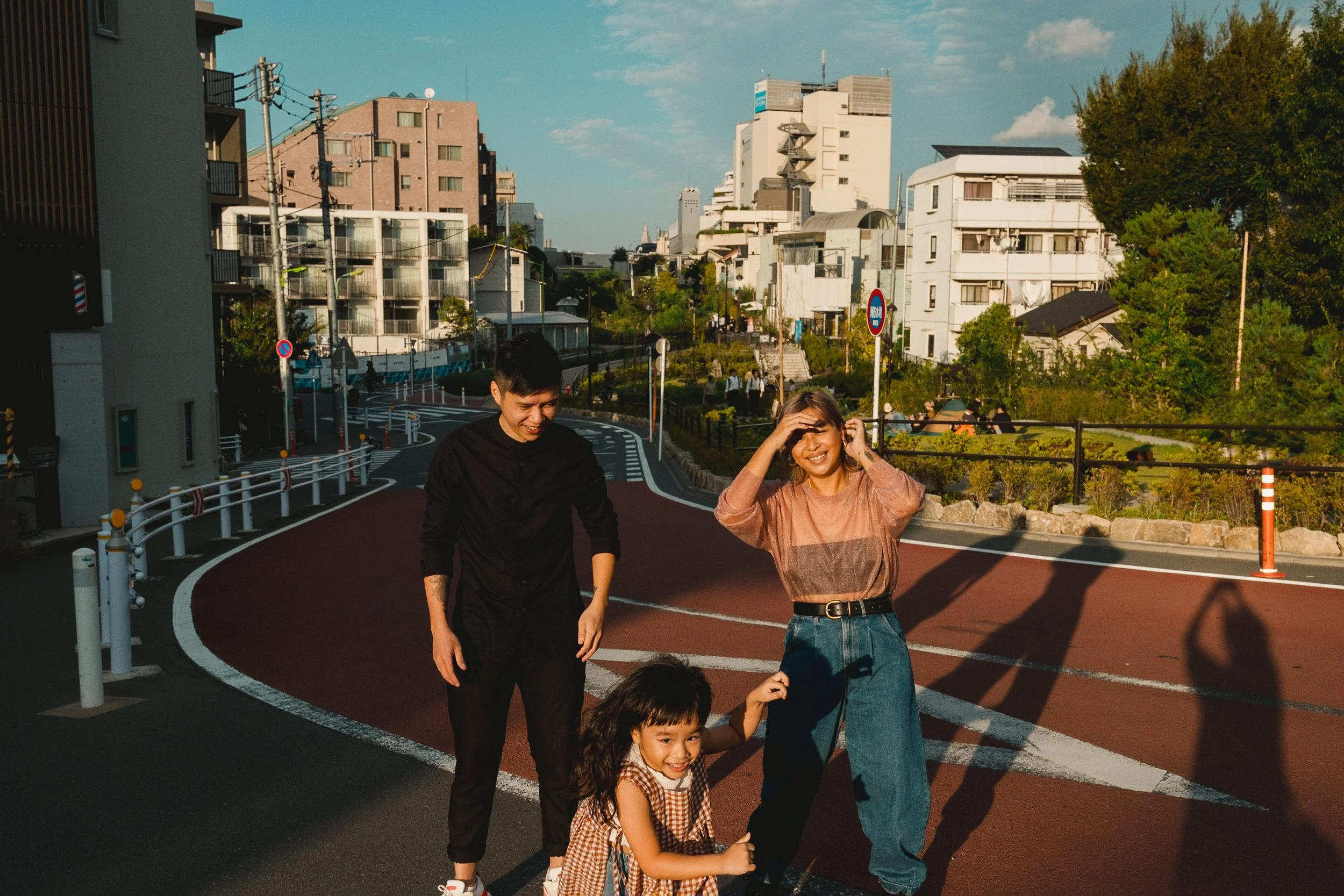 春の景色の中で家族の時間を写す