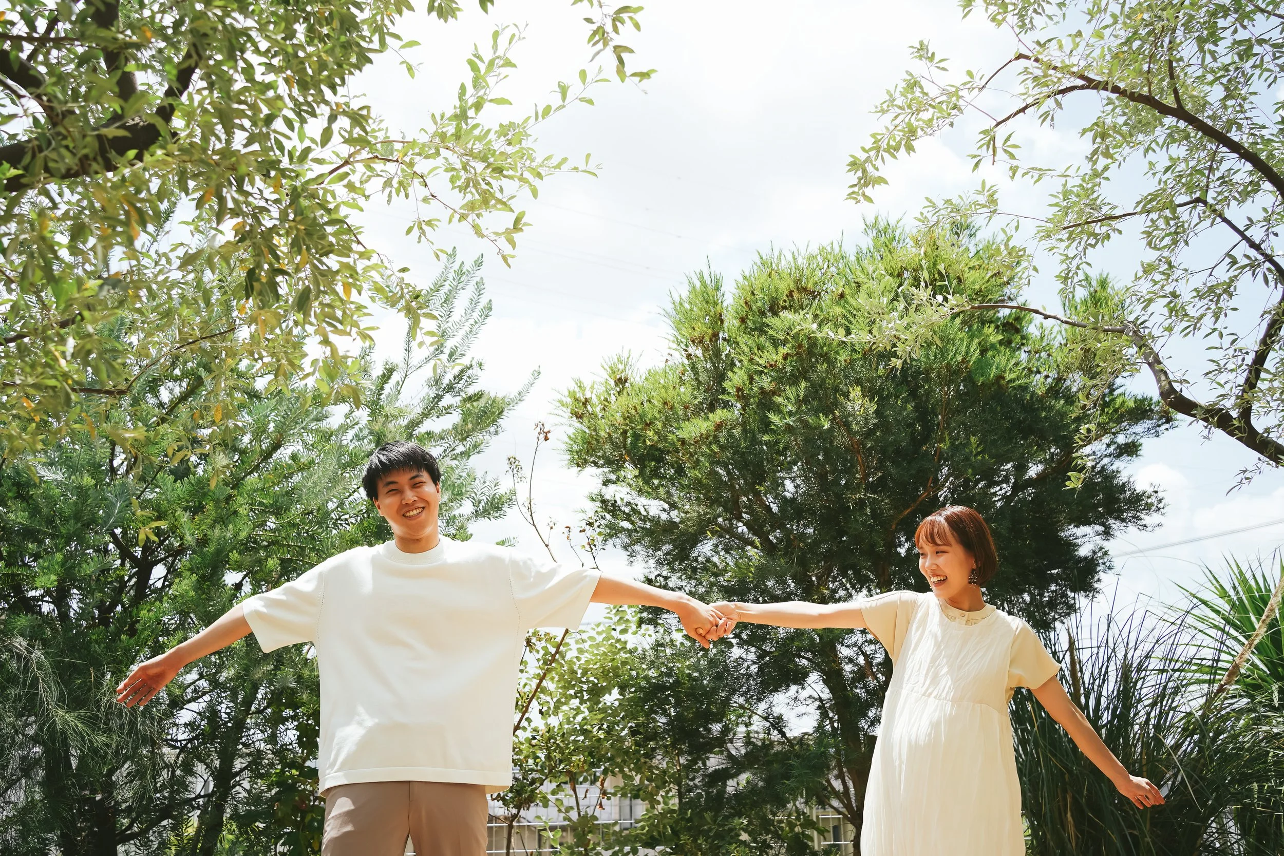 マタニティフォトの撮影時期とされている8ヶ月ギリギリまで撮影をするかどうか悩んでいたそう。ただ大きなお腹を写すのではなく、今の自分たちを残しておきたいという思いでスタジオを探し、クッポグラフィーの写真を見つけたそうです。緑に囲まれたあたたかい雰囲気に惹かれ、出産前の最後の遠出を楽しもうと、自宅から離れた横浜港北スタジオを選んでくださいました。
