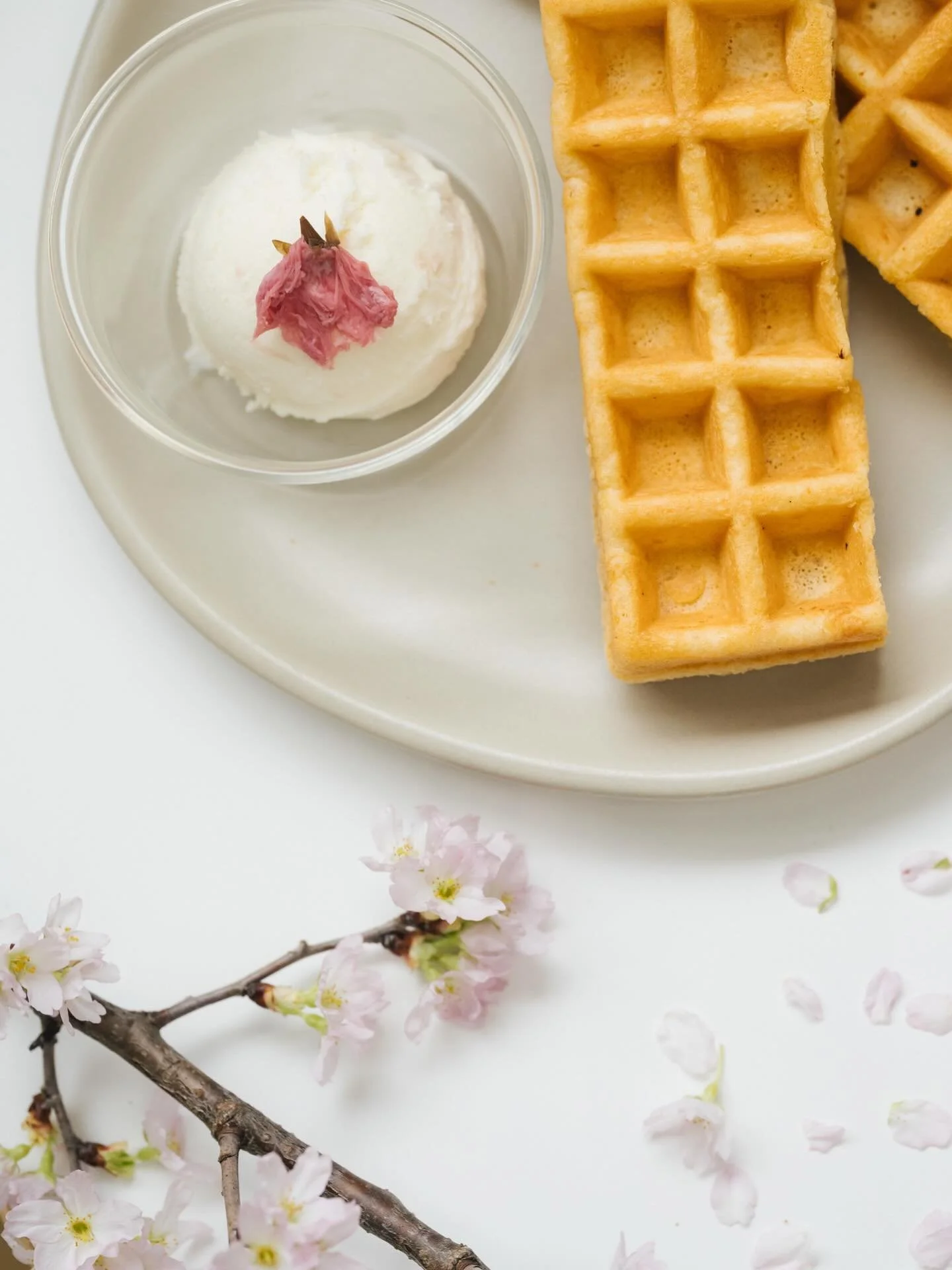 口にすると「サクッ」っという音が聞こえるワッフルは、噛みすすめると「サクサク」から「もちもち」に変わっていく楽しい触感。