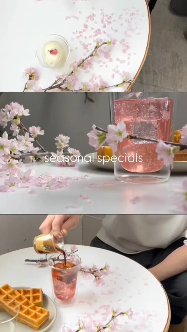 フローリストが在籍するクッポグラフィーのカフェならではの季節限定企画。スタジオ撮影で展開される季節の花束にインスパイアされたシーズナルメニューをお楽しみください。
