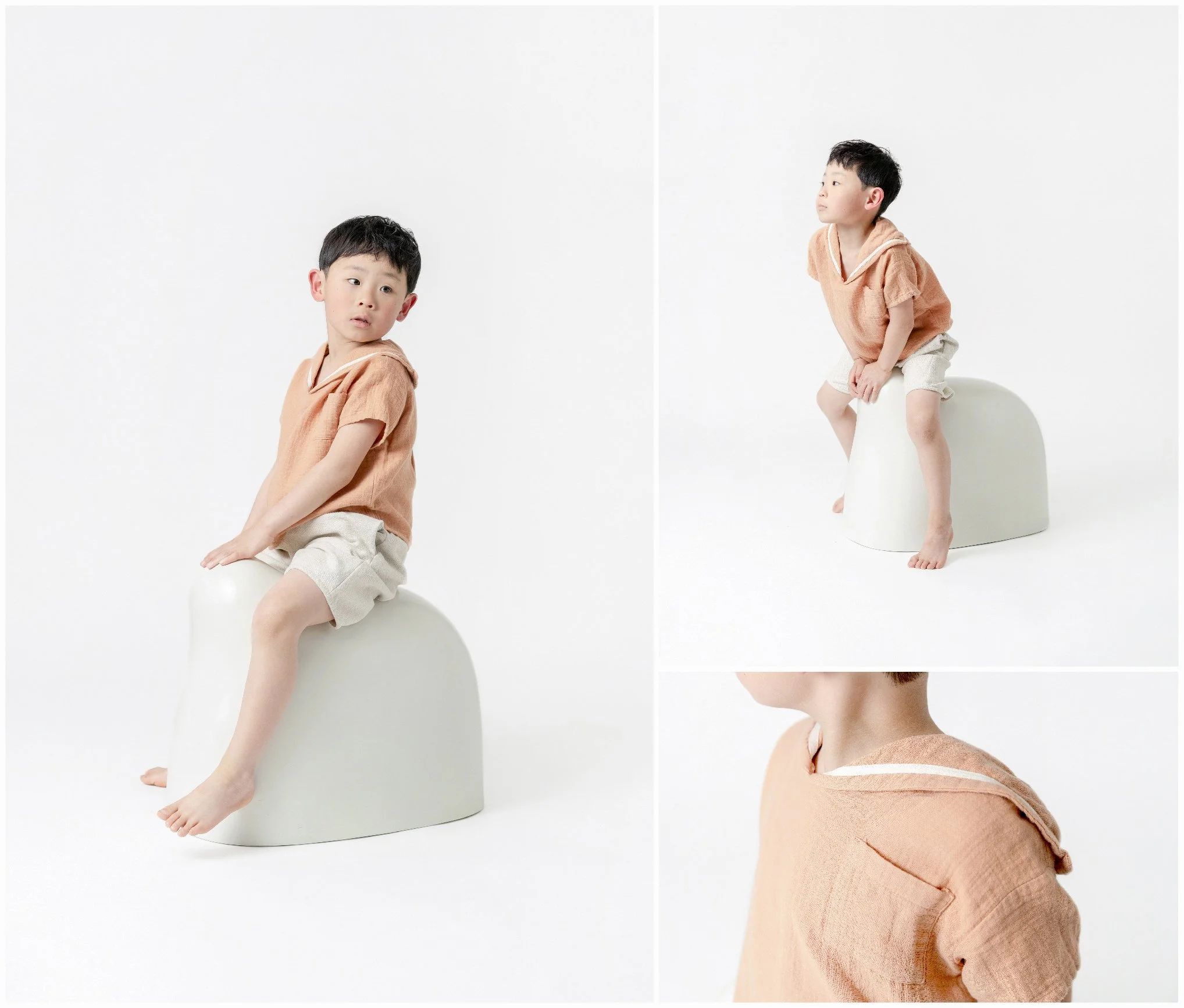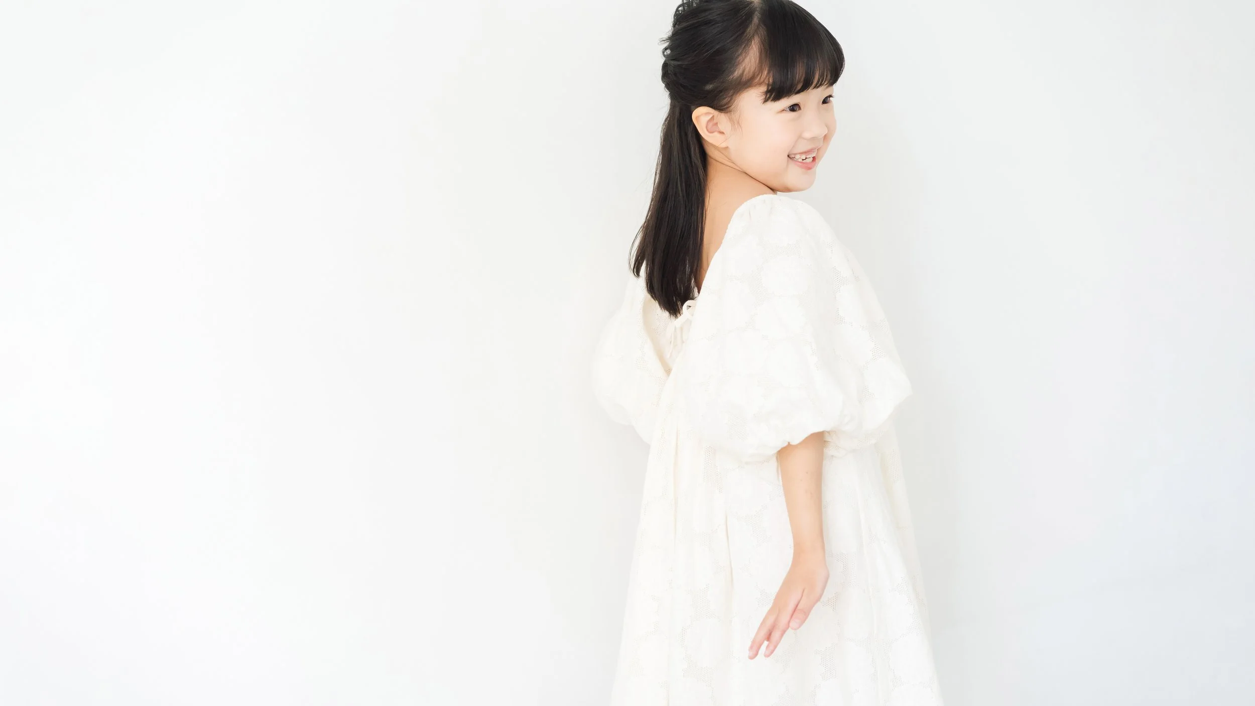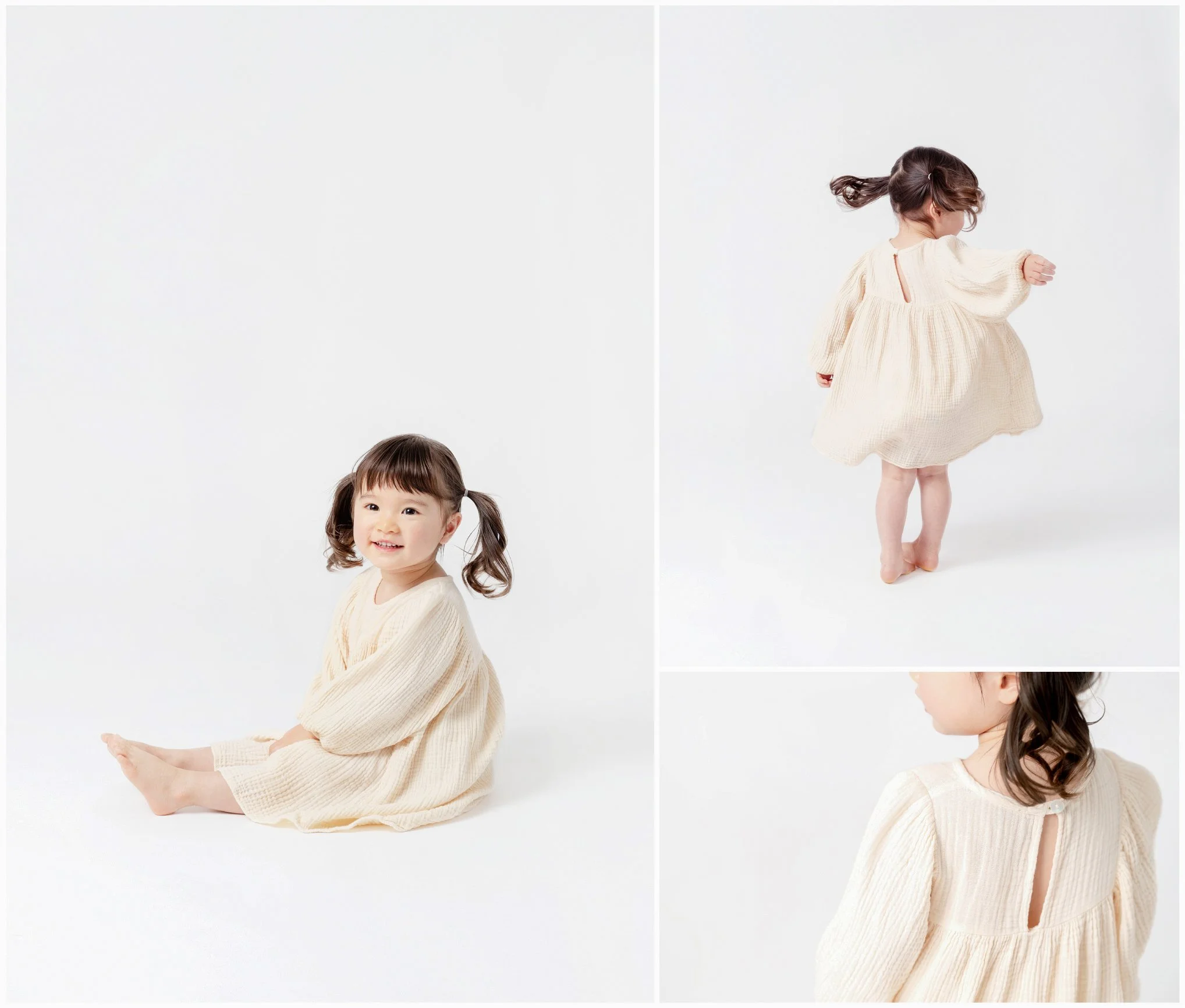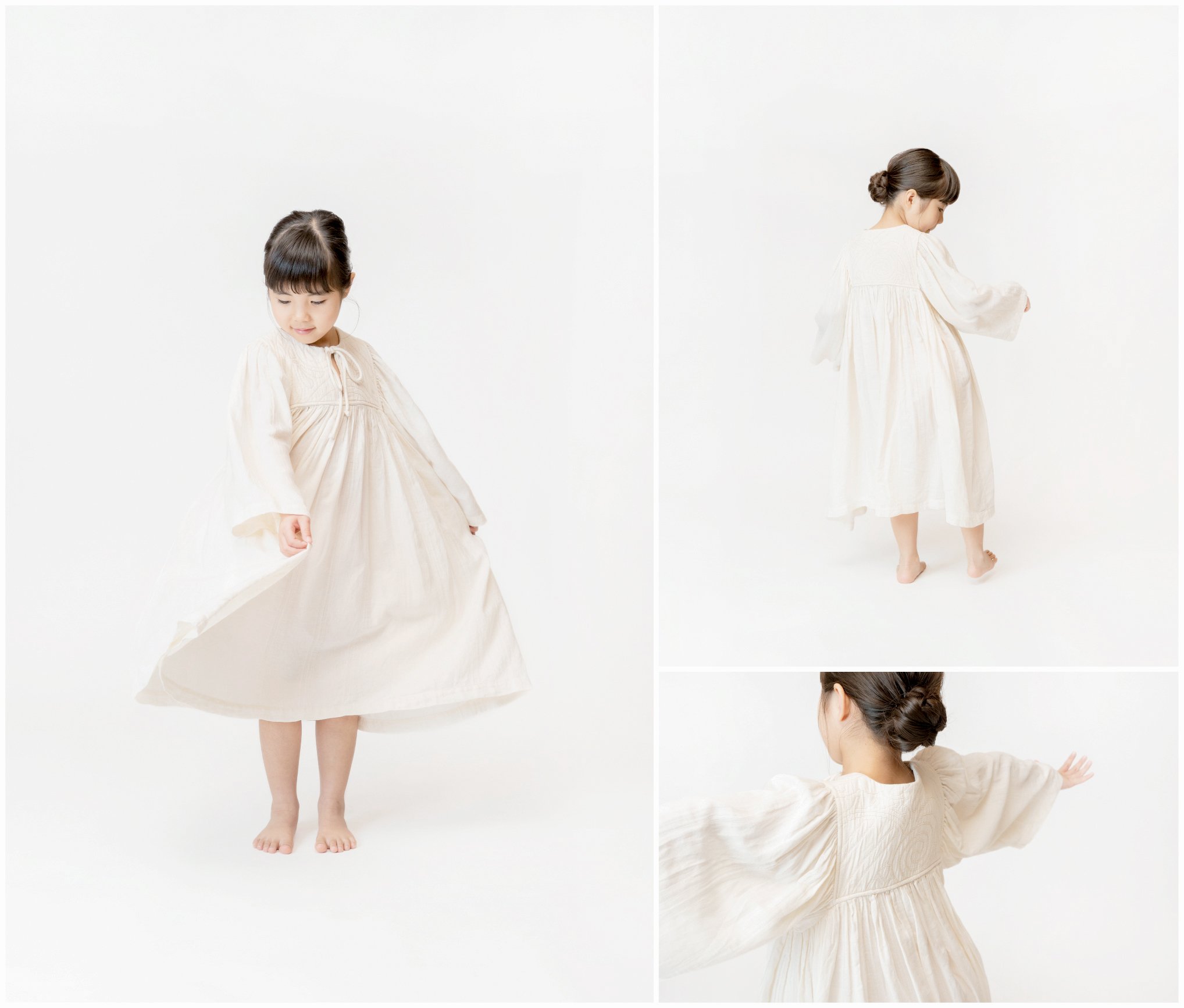 お子さまを引き立てるシンプルでタイムレスなデザイン。