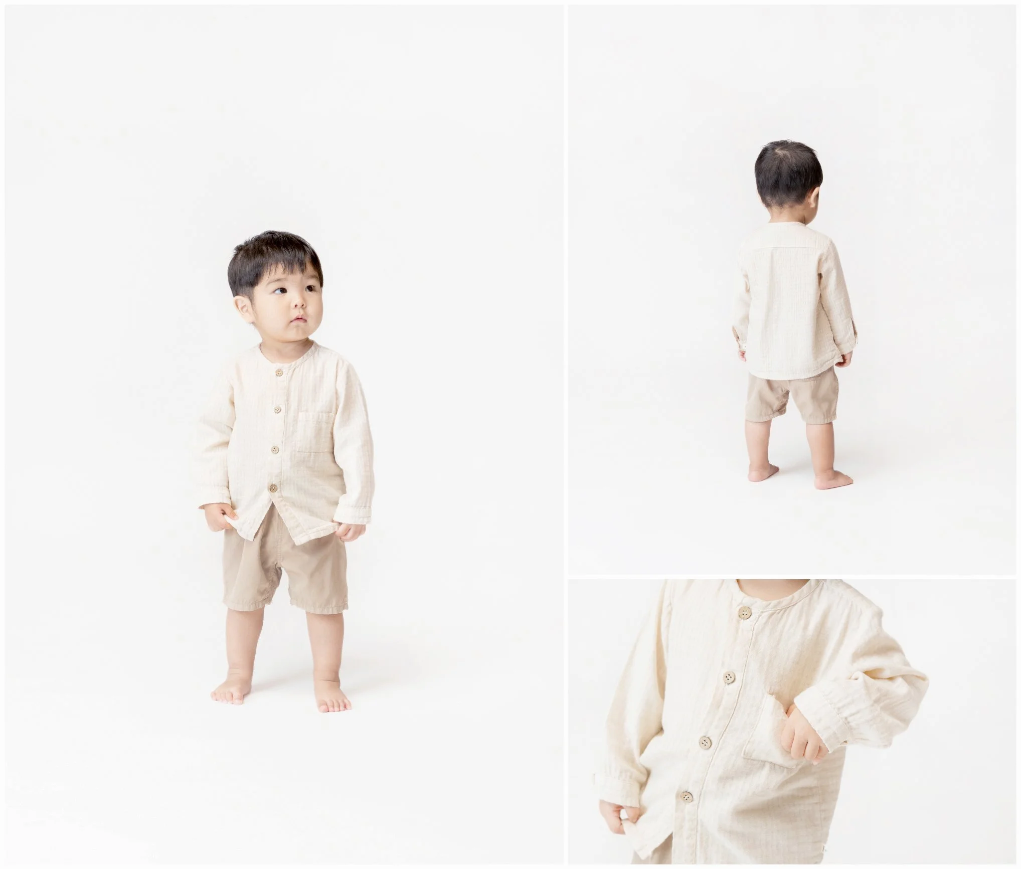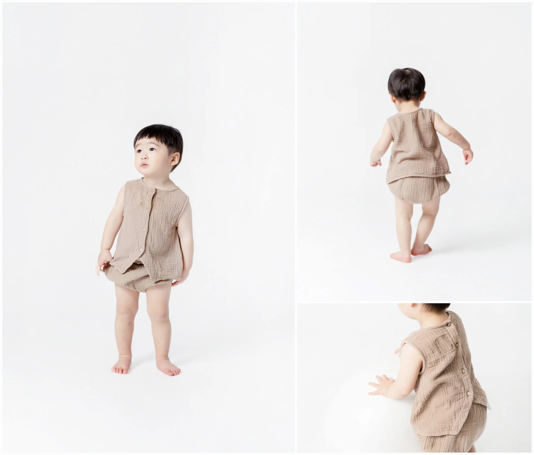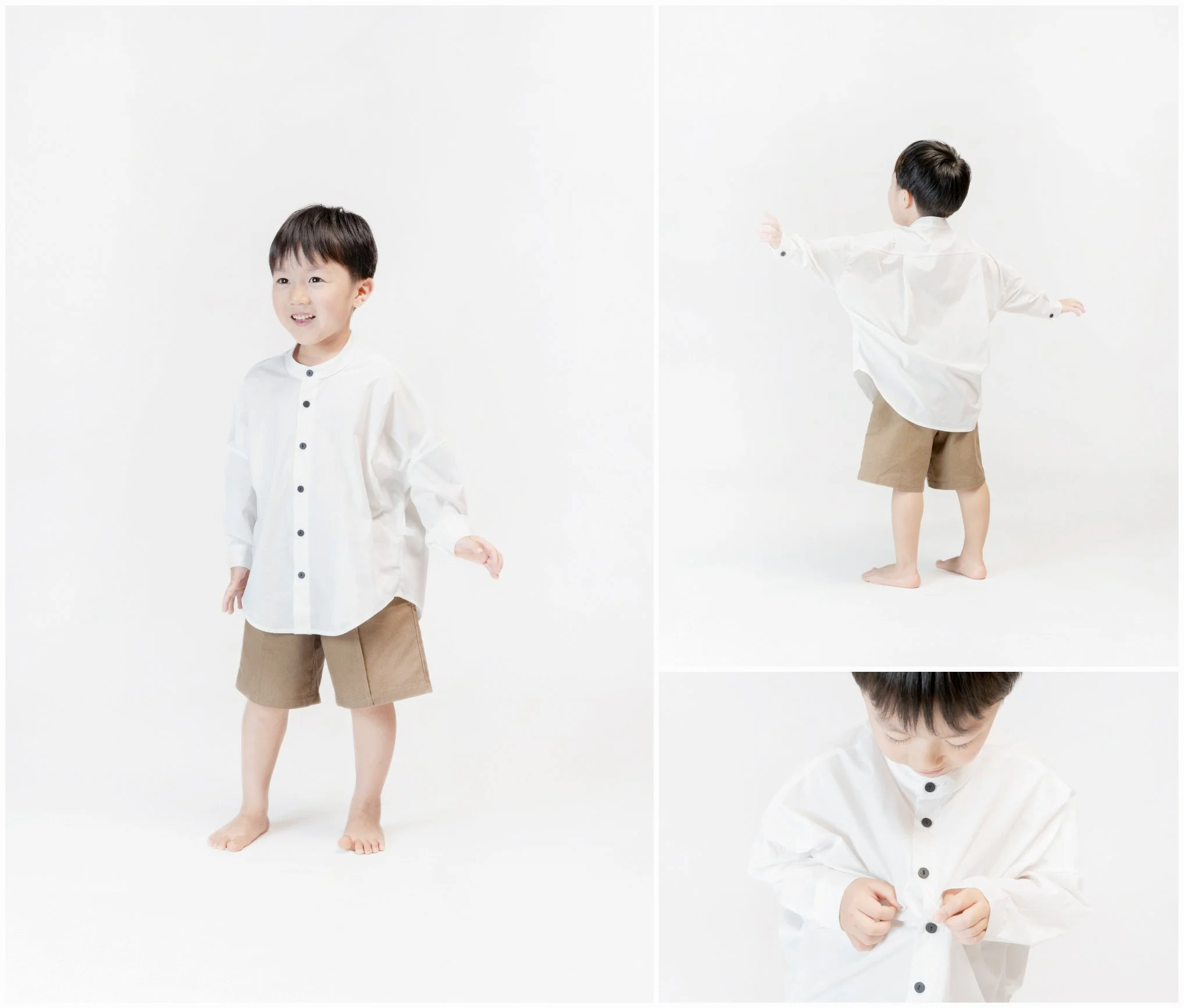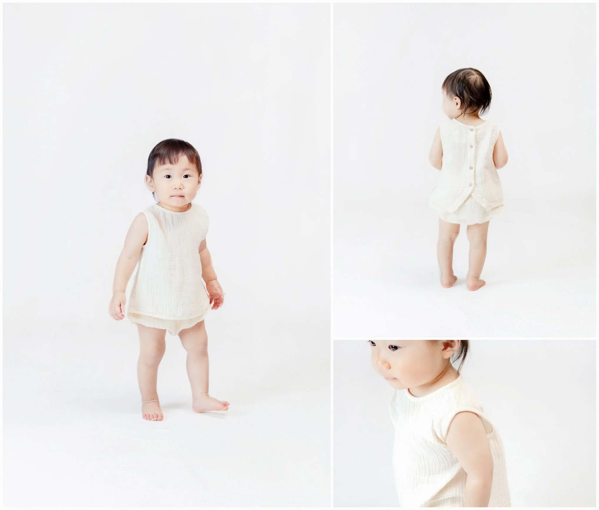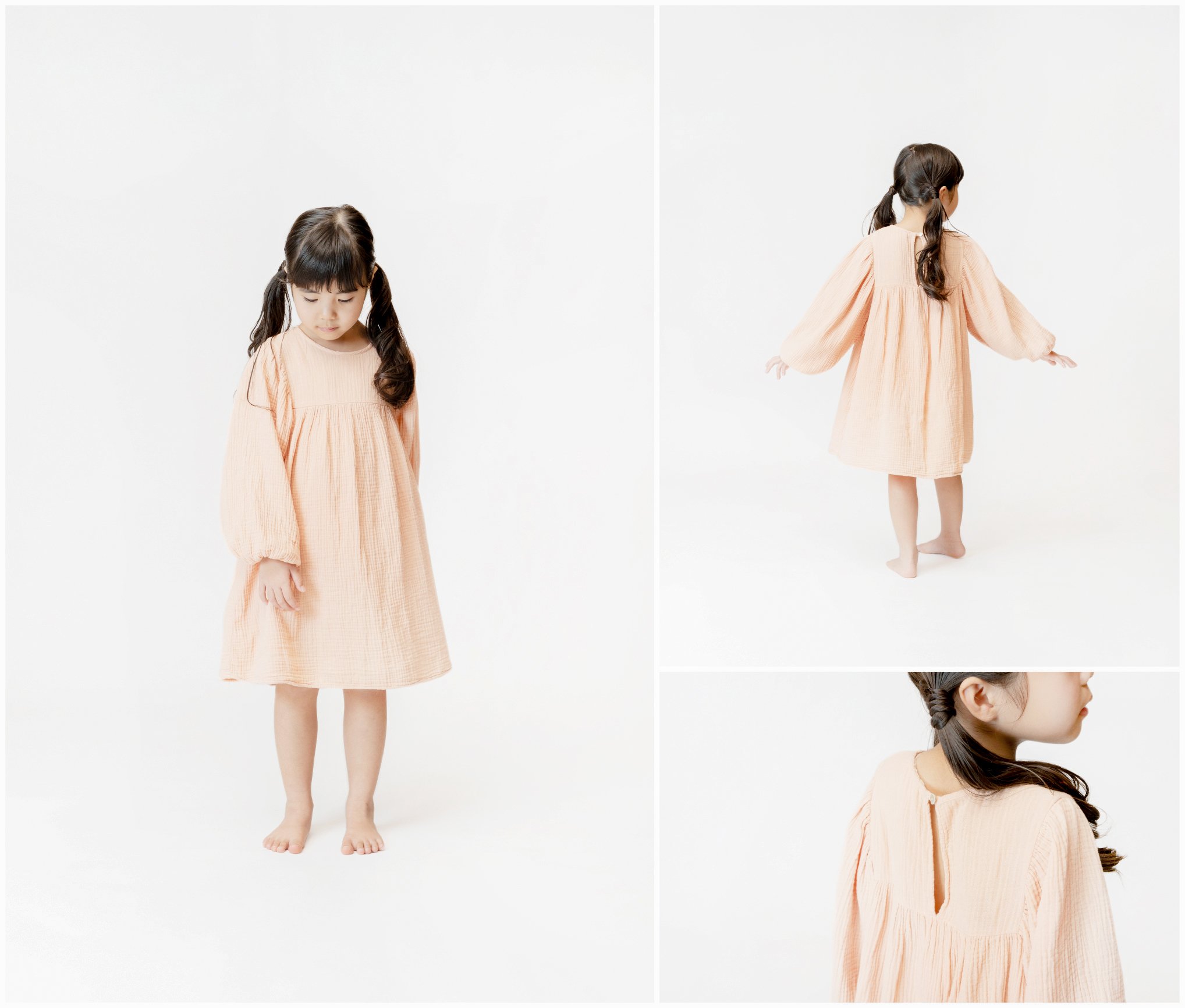 お子さまを引き立てるシンプルでタイムレスなデザイン。