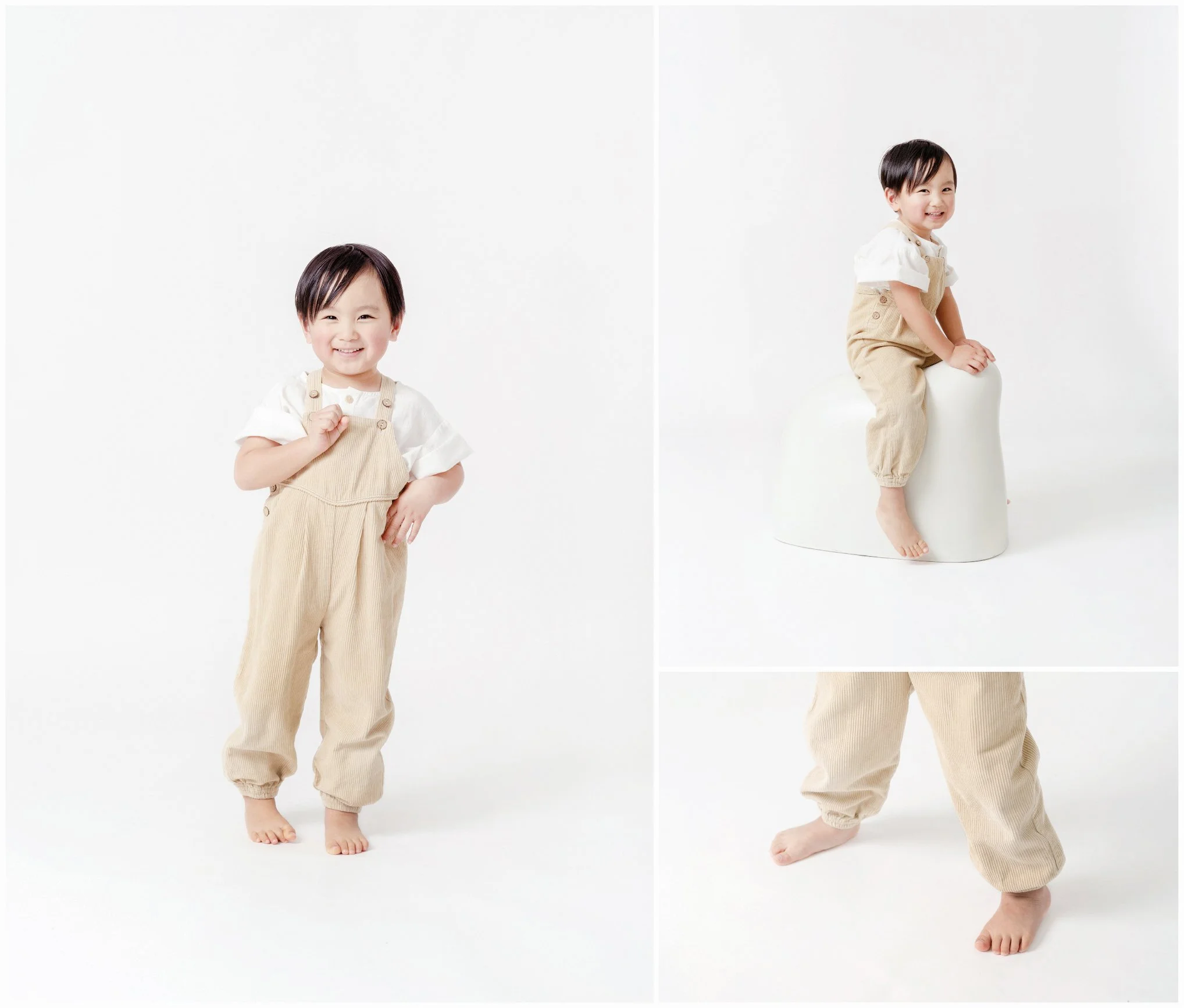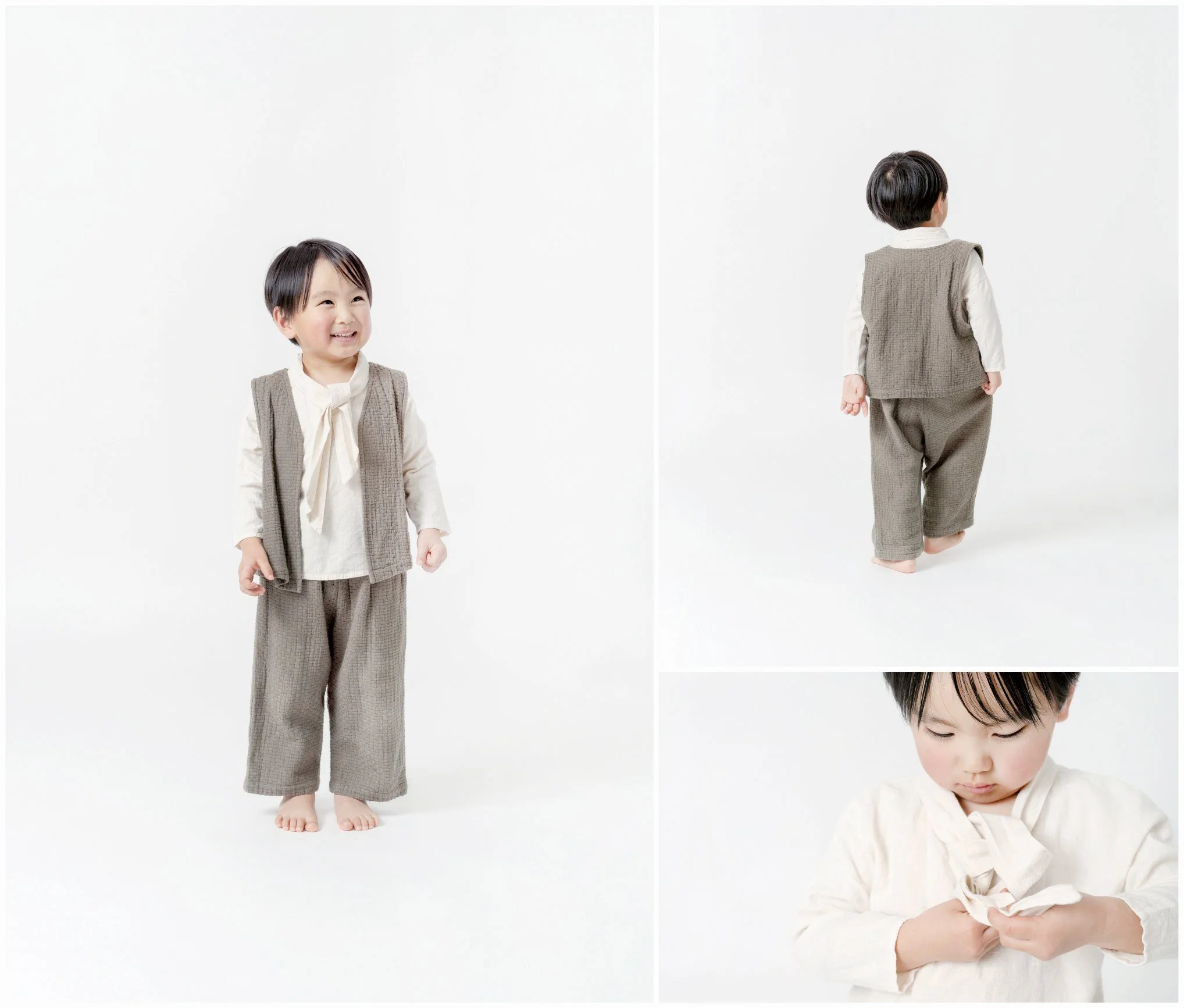 七五三の撮影では、前半を着物撮影、後半を洋服での撮影として、一回の撮影でどちらもお楽しみいただくことができます。