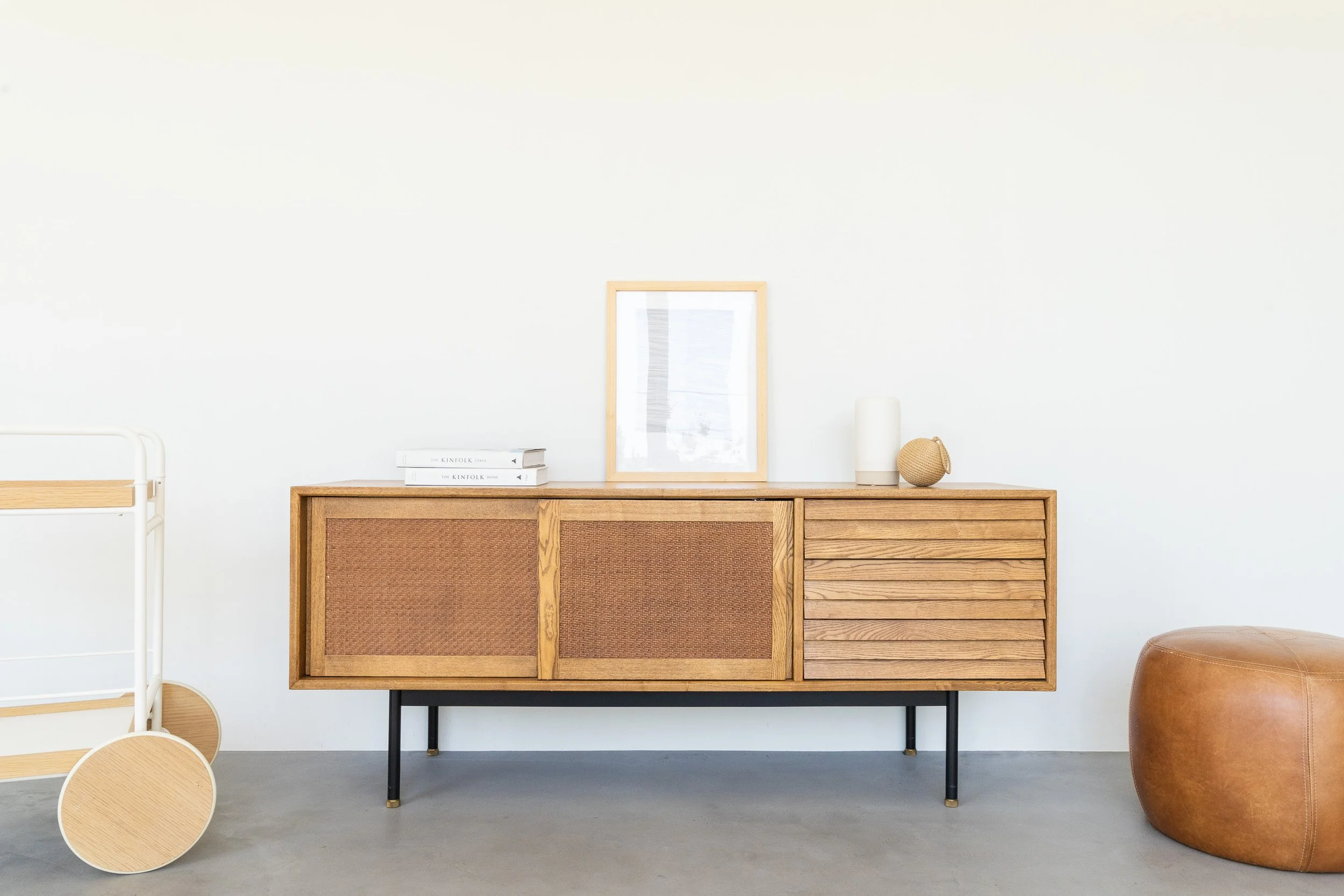 白とグレーをベースにしたシンプルな空間。そこにあるのは、木の温もりが伝わる家具と、瑞々しい葉をつける植物。