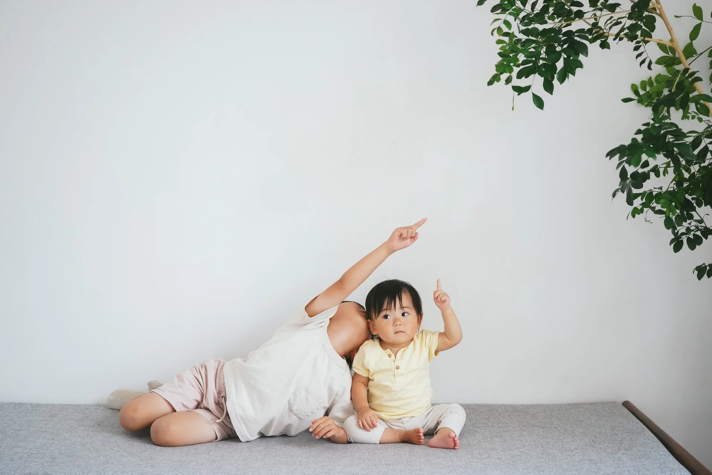 半年前にマタニティフォトを撮影したふたり。三人家族になって初めて訪れるパパの手にはファーストシューズ。