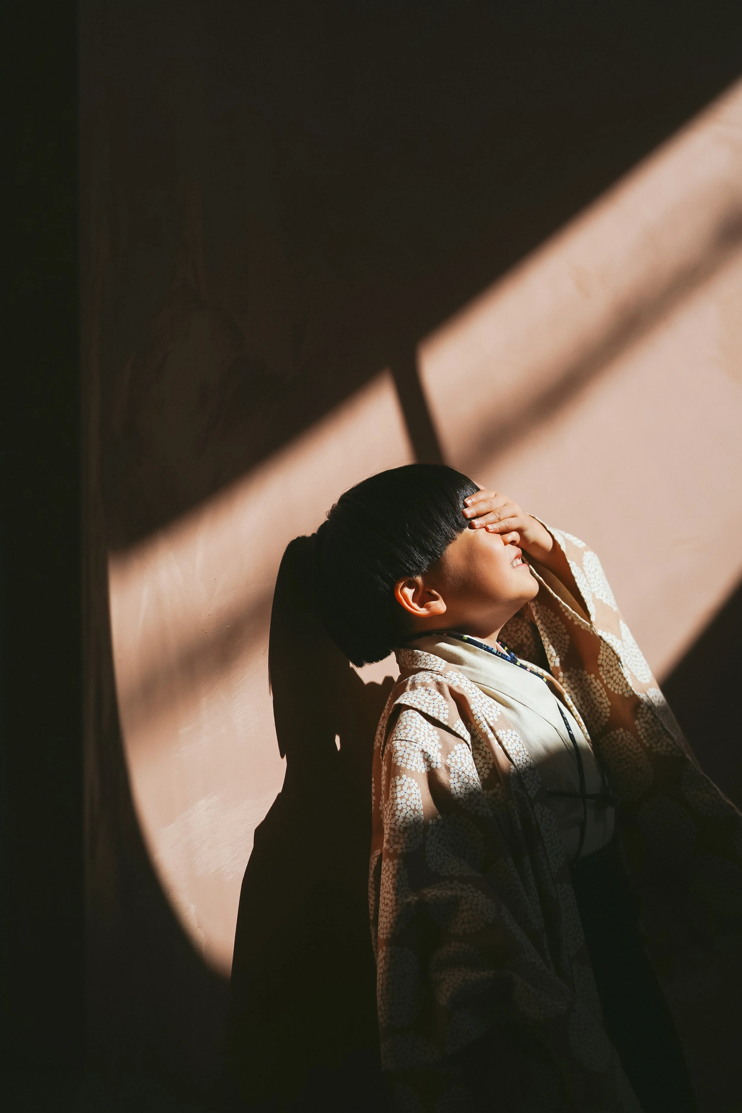 入口のカフェにいるのは、飼い犬との散歩帰りに立ち寄った老夫婦。そこに撮影を終えたばかりの着物姿の男の子が近寄り会話が始まる。奥の広い空間では、ウェディングドレス姿の女性が笑顔を見せる。