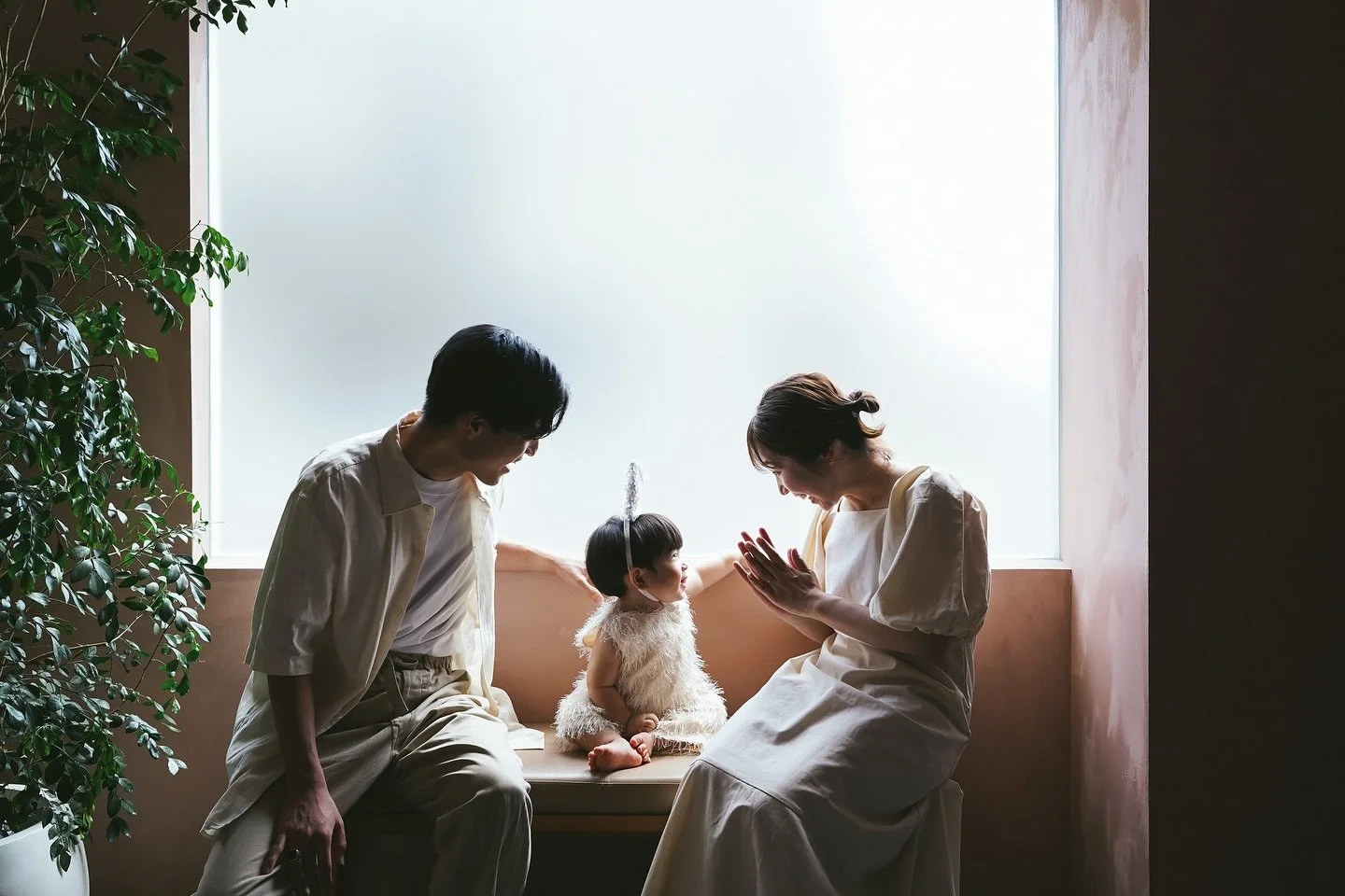 10年後に写真を振り返ったときに家族の間で交わされる会話は「いいスタジオだね」ではなく「いい表情だね」「ずっと変わらないね」という、人にフォーカスされたもののはず。ここには人より目立つ派手な装飾はありません。撮影される人がその人らしくいられるように、必要最小限の家具とグリーンだけを用意しました。